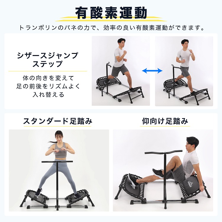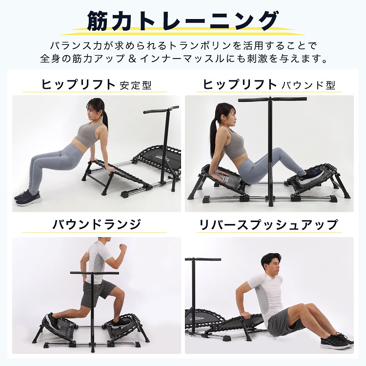 トランポリン ハンドル付き 横跳びトランポリン 家庭用 体幹トレーニング 下半身強化 バランス エクササイズ 室内運動