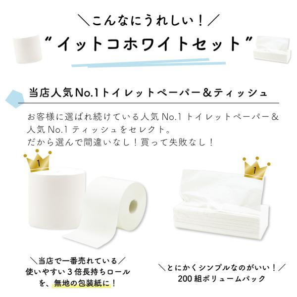 トイレットペーパー ティッシュ セット 白い包装紙 シンプル 詰め合わせ イットコ ホワイト 150m 200組 防災 備蓄 10001164 KS