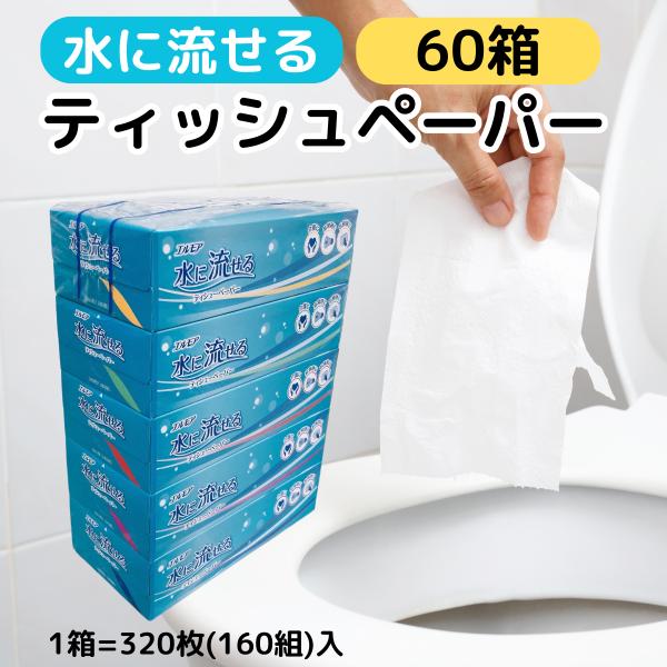 水に流せる ティッシュペーパー 水に溶けやすい トイレに流せる 紙 ボックス ティッシュ ちり紙 チリ紙 落とし紙 60箱 まとめ買い エルモア