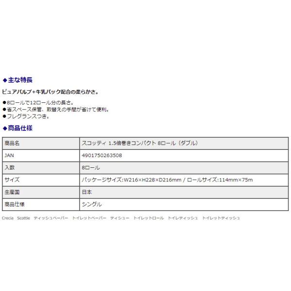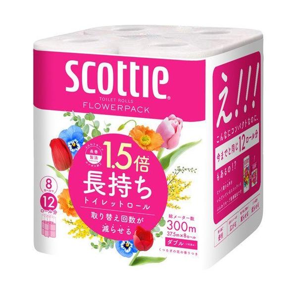 クレシア トイレットティシュー スコッティ フラワーパック 1.5倍巻き 37.5m 8ロール ダブル 8パックセット
