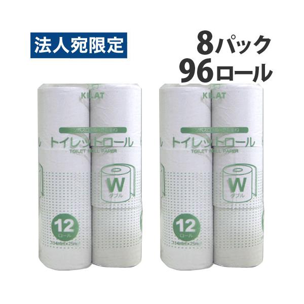 トイレットペーパー ダブル 25m 96ロール 12ロール 8パック 再生紙 トイレットロール『法人宛のみ送料無料(一部地域除く)』