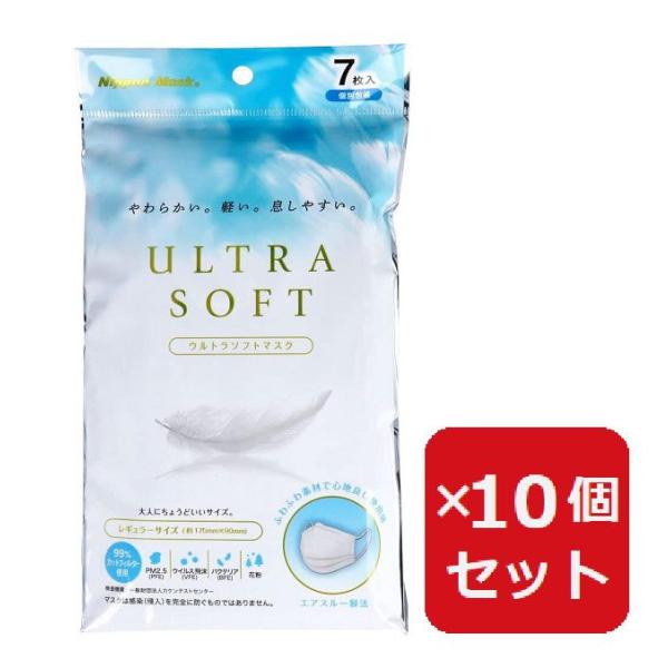 不織布マスク 個包装 3層 ウルトラソフトマスク レギュラーサイズ 個別包装 7枚入 No.96 ULTRA SOFT ふつう 【×10個セット】