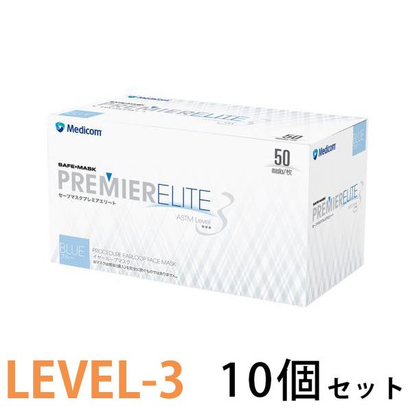 セーフマスク プレミア エリート レベル3 ブルー 50枚x10箱 (500枚) メディコム GMK201915