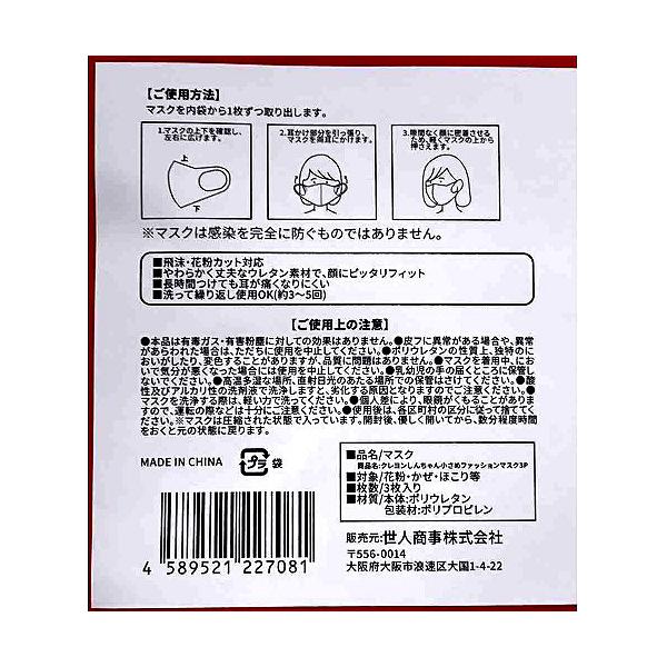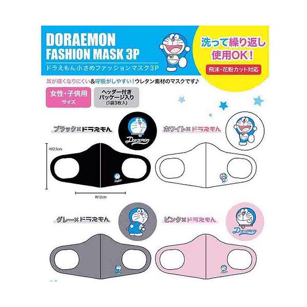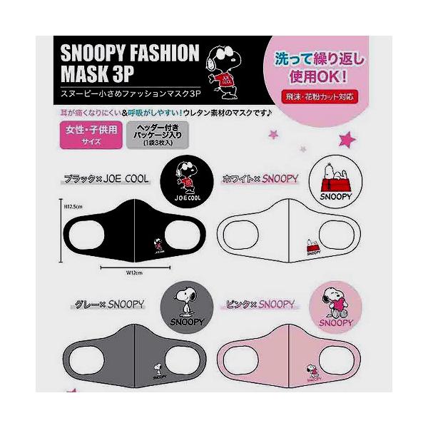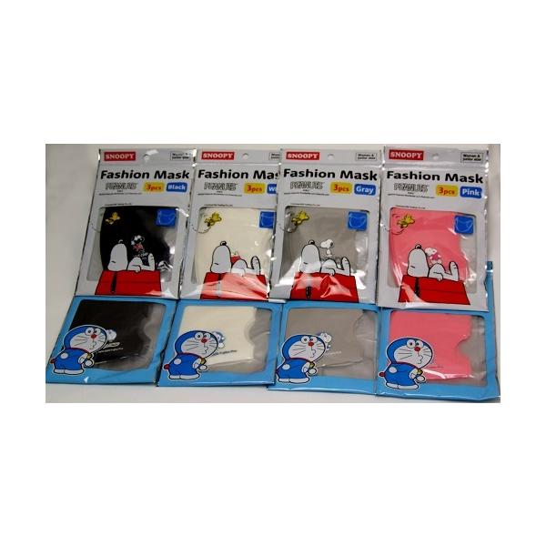キャラクターマスク ドラえもん スヌーピーワンポイント柄 子供・婦人用小さめマスク 同柄同色3枚入り 洗って繰り返し使用可 ポリウレタン素材