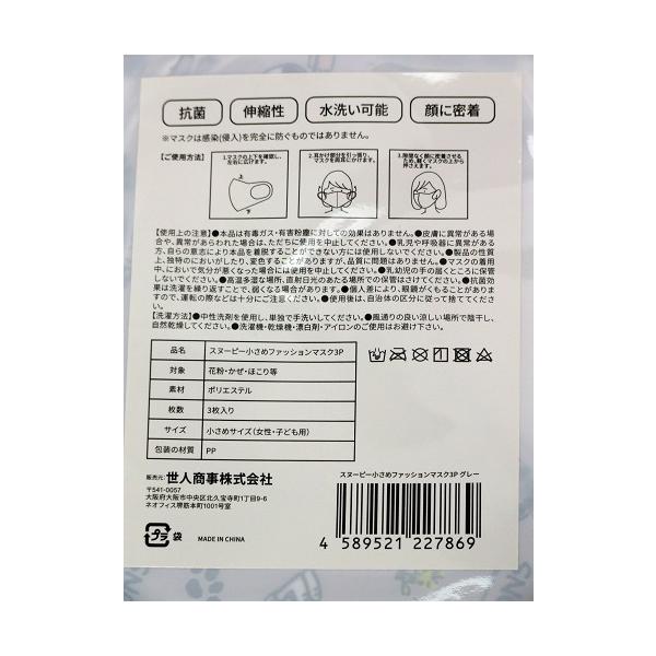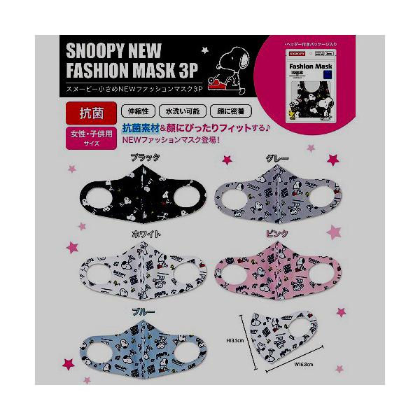 子供・婦人用 スヌーピー総柄マスク(同色同柄3枚)少し小さめサイズ(お顔の小さい女性、子供サイズ)です