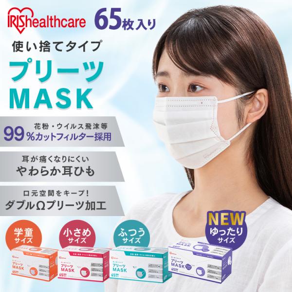 マスク 不織布 アイリスオーヤマ 不織布マスク 使い捨てマスク 65枚入 子供用 学童 小さめ ふつう ゆったり大きめ