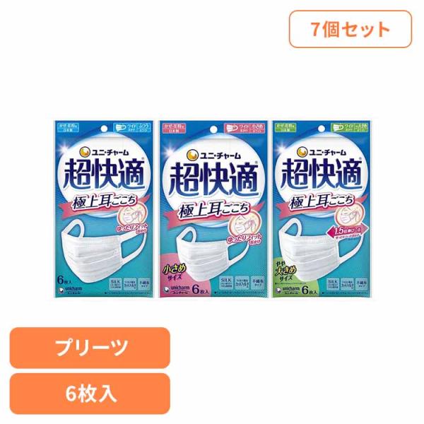 ユニ・チャーム 超快適 マスク 花粉 プリーツ 不織布 風邪 掃除 ホワイト 小さめサイズ (7個)超快適マスク 極上耳ごこち 6枚 43154 超快適マスク