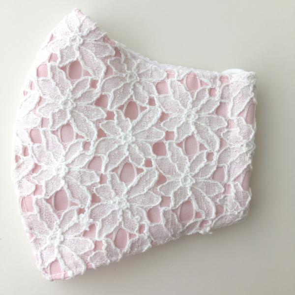 マスク 大人用 布マスク 立体マスク コットンレース さくら ホワイト/ピンク 花柄 日本製 デザインマスク おしゃれマスク 小顔マスク 花粉症 インフル