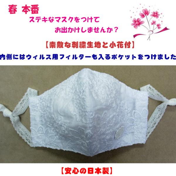 マスク おしゃれ 刺繍マスク レース ふんわり 日本製 洗える 布製 MSK-10