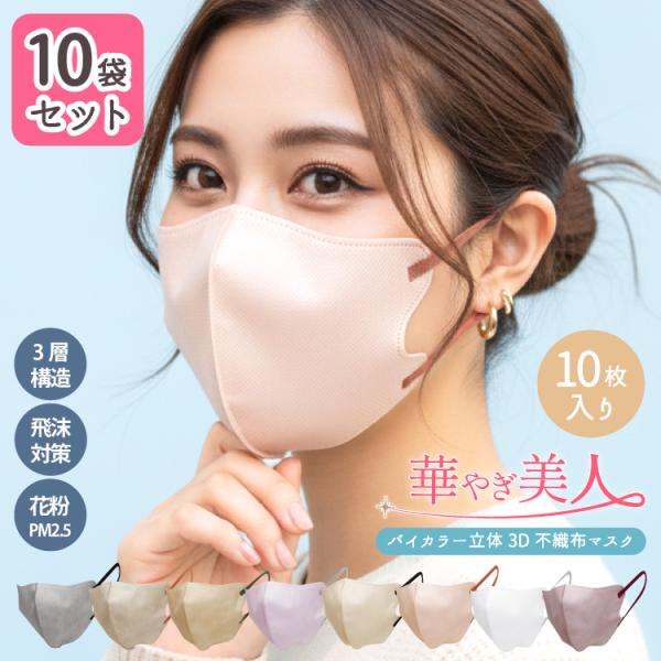 バイカラー 3D 立体 不織布 マスク 10袋 華やぎ美人 おしゃれ カラー 小顔効果 かわいい ウイルス飛沫 まとめ買い お得