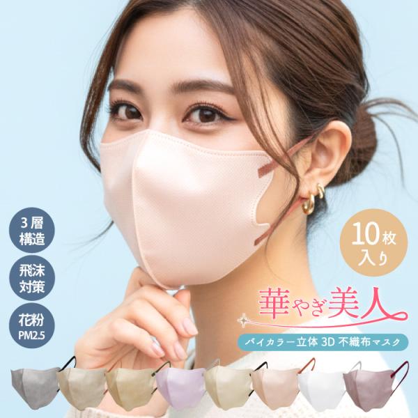 バイカラー 3D 立体 不織布 マスク 10枚入 華やぎ美人 おしゃれ カラー 小顔効果 かわいい ウイルス飛沫 花粉 人気