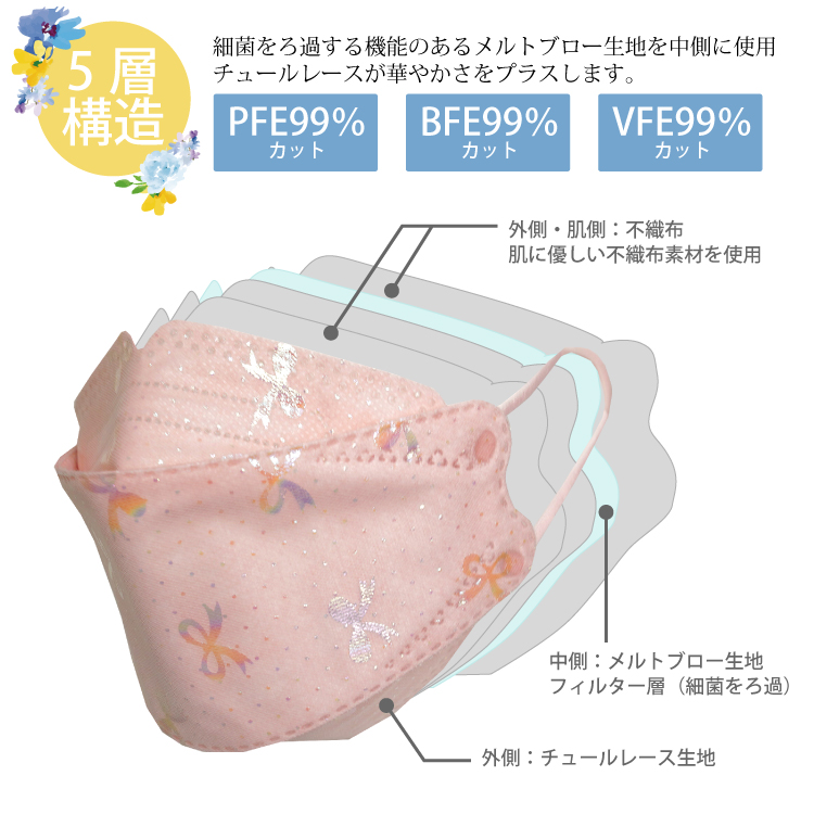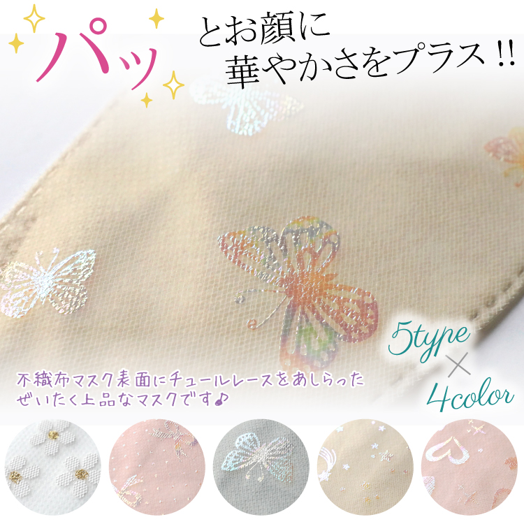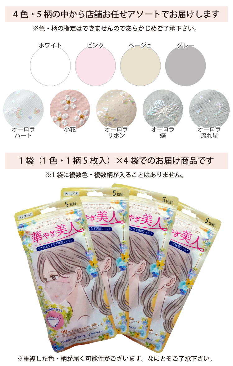 マスク 不織布 おしゃれ チュールレースマスク おまかせ4袋セット 5枚入×4P 3D 立体マスク ラメ オーロラ 人気 かわいい