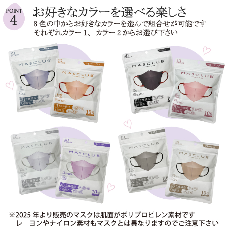 3D 立体マスク レディース MASCLUB マスクラブ \1袋あたり299円/ 2袋 バイカラー 3D 不織布 マスク 人気 おしゃれ