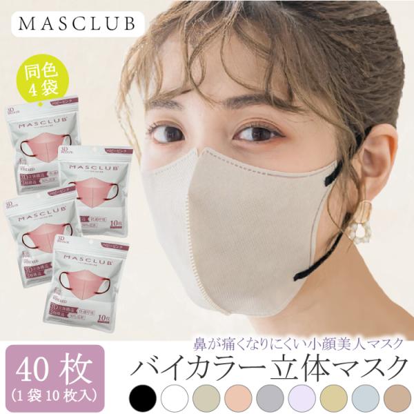 3D 立体マスク レディース MASCLUB マスクラブ \1袋あたり180円/ 4袋 バイカラー 3D 不織布 マスク 人気 おしゃれ