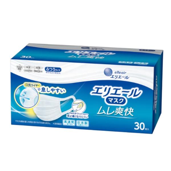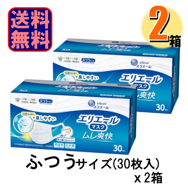 2箱で送料無料 お買得 エリエール マスク ムレ爽快 日本製 ふつう 30枚入 2箱セット 爆買