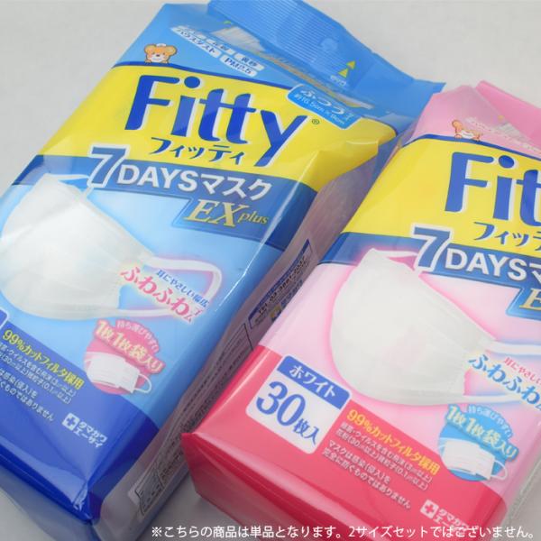 フィッティ Fitty 7DAYSマスクEXプラス ホワイト やや小さめサイズ エコノミーパック 30枚入 ケース付 JIST9001適合