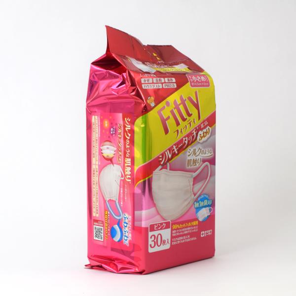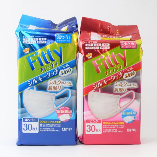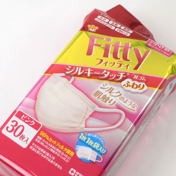 フィッティ Fitty シルキータッチ マスク 耳ゴムふわり 30枚入 個包装 やや小さめサイズ ピンク ケース付 JIST9001適合