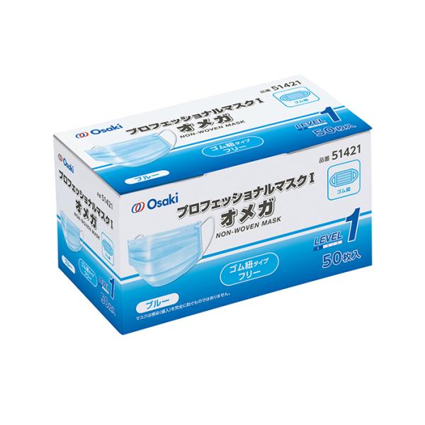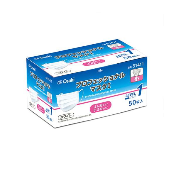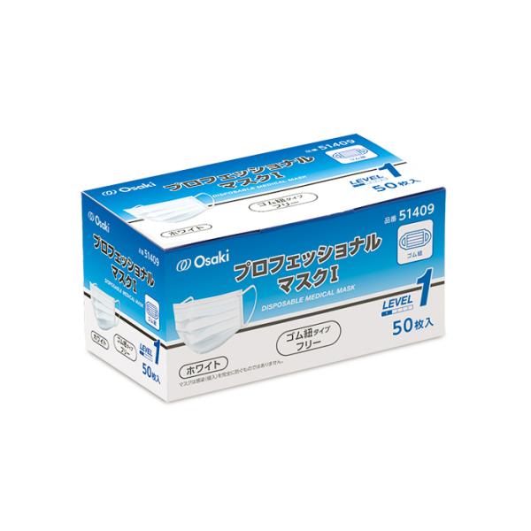 オオサキメディカル プロフェッショナルマスクI 50枚入 ふつうサイズ ゴム紐 医療用 サージカルマスク ASTM F2100-11 レベル1