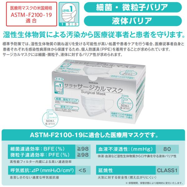 サラヤ サージカルマスクF 50枚入 ホワイト ふつうサイズ 不織布 医療用 ASTM-F2100-19 レベル1