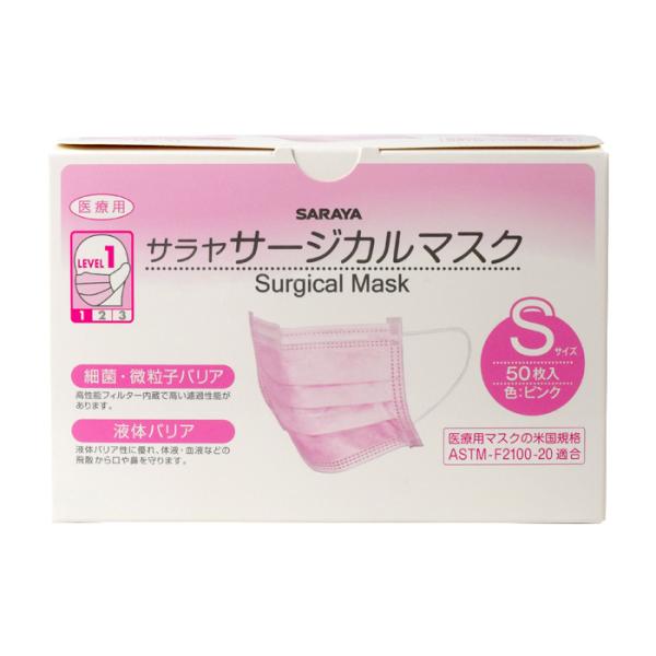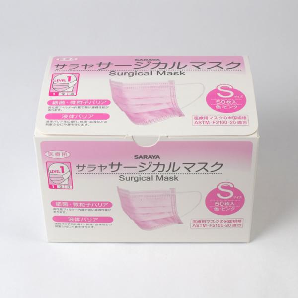 サラヤ サージカルマスクS 50枚入 ピンク 小さめサイズ SARAYA 医療用 ASTM-F2100-20 レベル1
