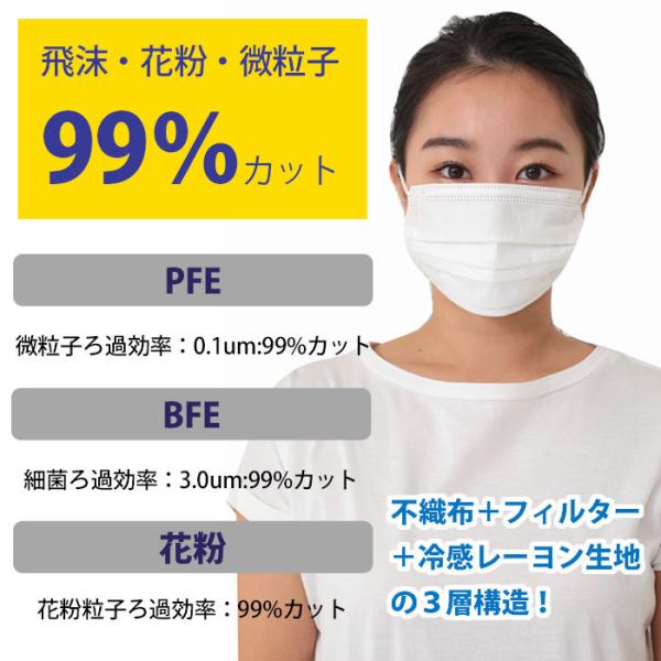 ひんやり 接触冷感 不織布マスク 5枚入り 2パックセット BFE99 三層フィルター 使い捨て 立体 花粉 飛沫 クール レーヨン