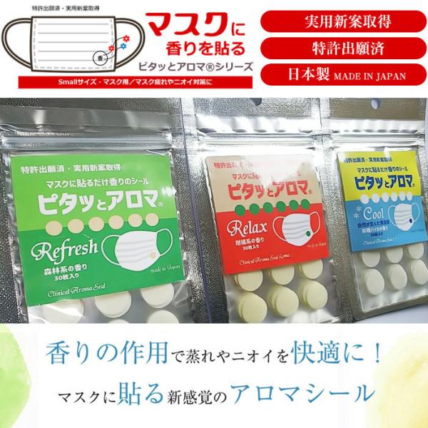 マスク用 アロマ シール 30枚入り 3パック セット 冷感 クール ミント 精油 熱中症 ピタッとアロマS リラックス 認知症 マスク アロマテラピー