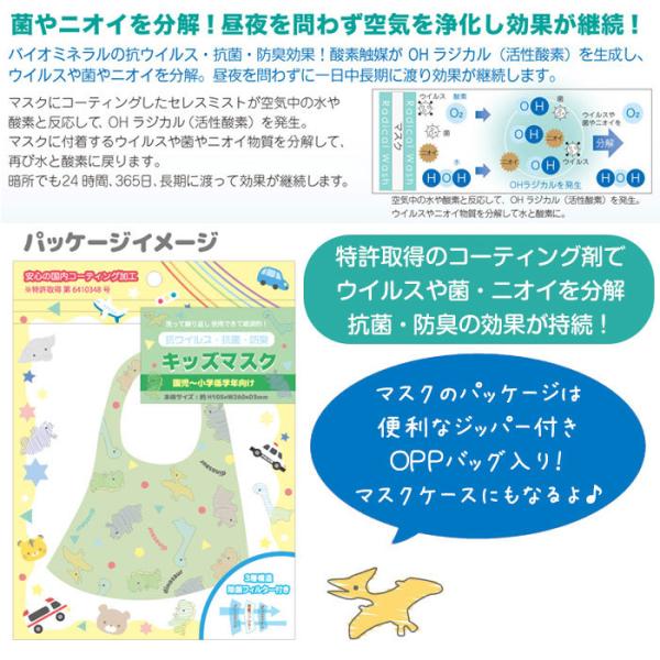 特許取得 抗ウイルス 抗菌 防臭 洗える キッズ マスク 園児 洗濯 布マスク 抗菌加工 除菌フィルター 恐竜 乗り物 飛沫 子ども 男の子 幼稚園