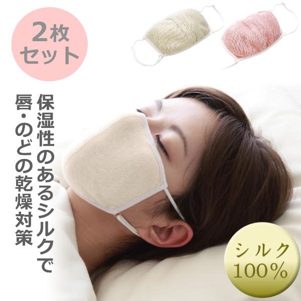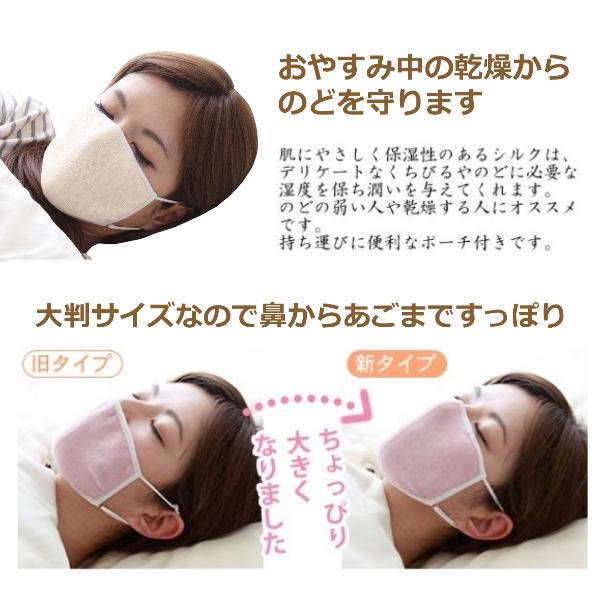 2枚 喉の乾燥 のど 夜用 マスク 就寝 寝る時 うるおい 保湿 洗える 繰り返し使える 手洗いOK シルク100% 大きめ 大判 潤いシルクのおやすみマスク ポーチ付