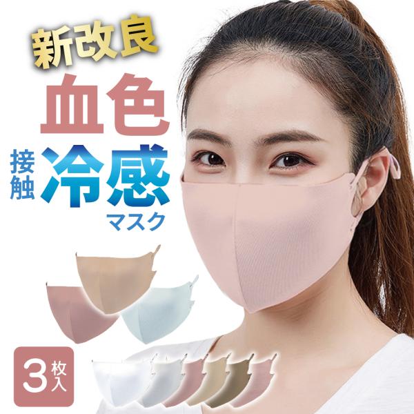 接触冷感 マスク 3枚組 日本製抗菌コーティング ひんやり 洗える ウイルス 対策 UVカット