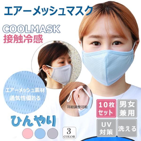 マスク 10枚入り エアーメッシュクールマスク クールマスク 接触冷感 布マスク 冷感クール 洗える 夏用 涼しい 耳紐調整可能 ひんやり男女兼用 繰り返し使える