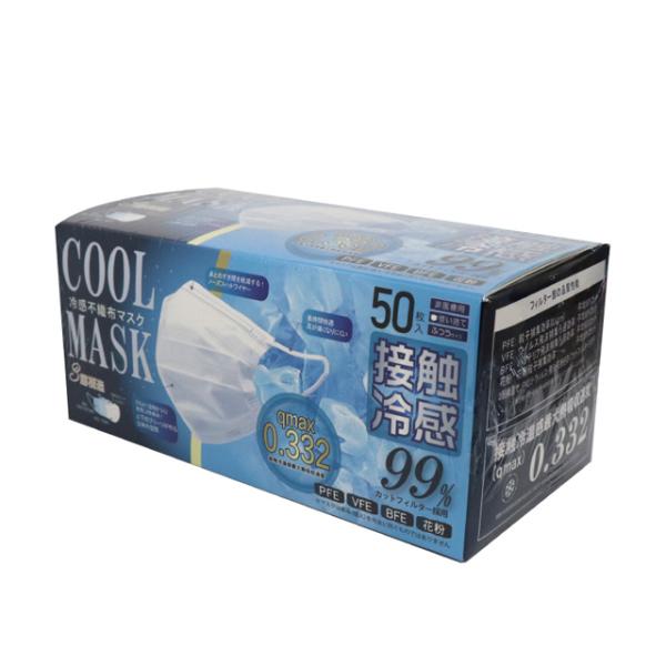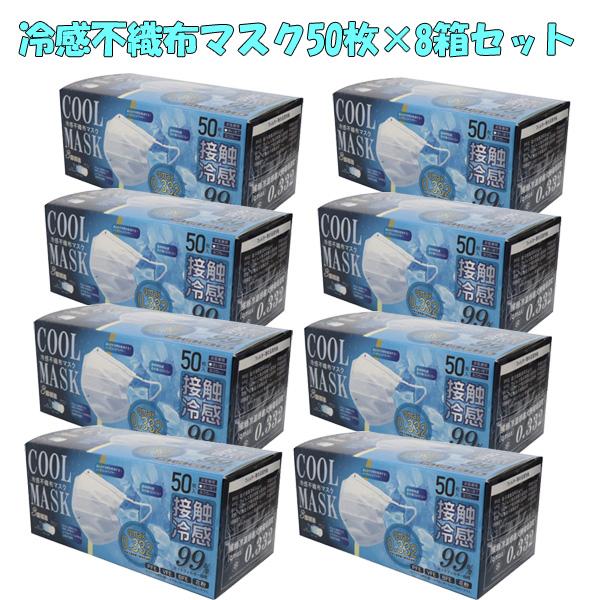 8箱セット 冷感不織布マスク 400枚(50枚×8箱) 接触冷感 ふつうサイズ ホワイト ひんやり 耳が痛くなりにくい ノーズフィットワイヤー