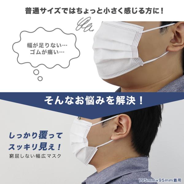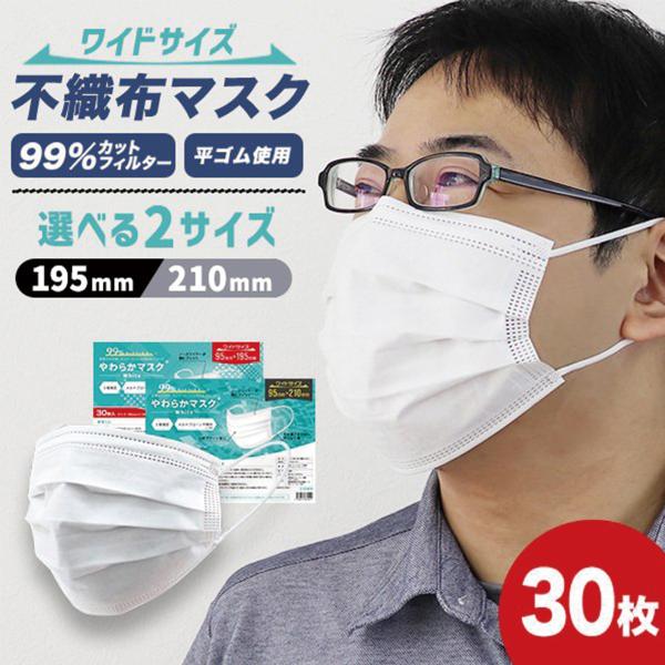 マスク 不織布 大きめ 仕事用 おしゃれ 195mm 210mm 大人用 ワイドサイズ やわらかマスク 使い捨て 30枚 白 3層 耳が痛くならない WEIMALL