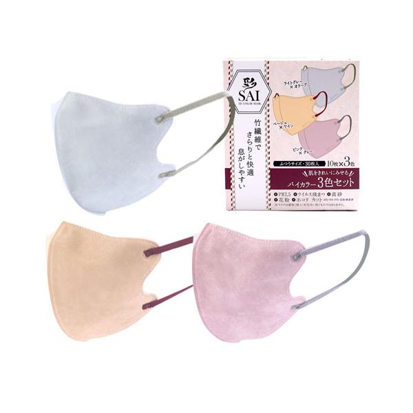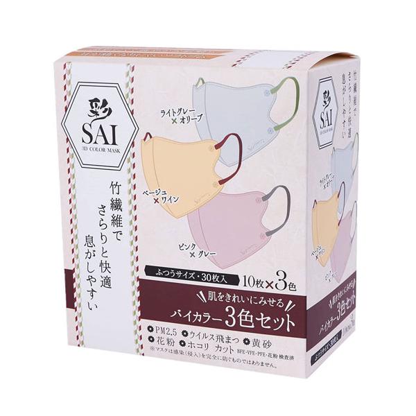 彩 SAI 立体バイカラーマスク 30枚 ふつうサイズ 立体 マスク 30枚入 3色 アソート 3D 立体マスク 大人用 4層構造 立体構造