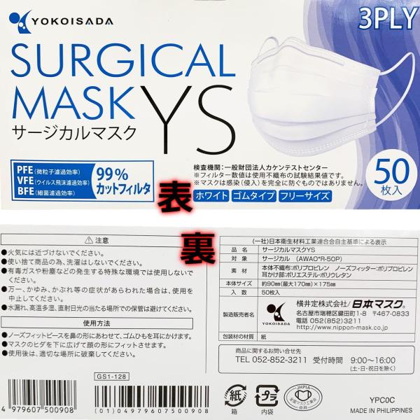サージカルマスク YS 50枚入 国内メーカー 横井定 耳が痛くなりにくく 薄くて丈夫です