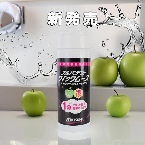 部分入れ歯・総入れ歯 1分でキレイ! ムツミ アルバデントクイックムース 150ml 約210プッシュ グリーンアップルの香り 歯科医院専売品