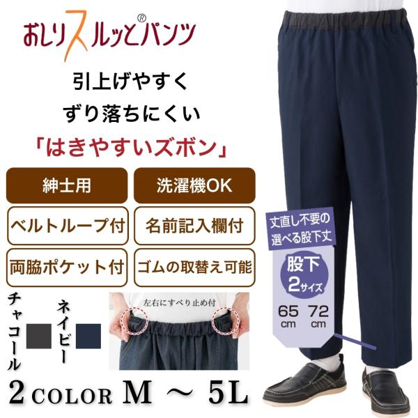 【おしりスルッとパンツ】 紳士 ベルトループ付 男性用 通年用 メンズ リラックスパンツ シニア向け ズボン パンツ シニア シニアファッション M〜3L