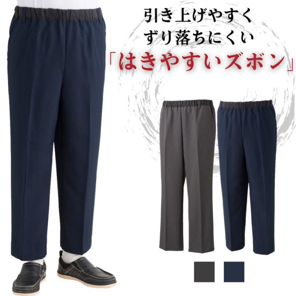 【4、5L】 おしりスルッとパンツ 紳士 ベルトループ付 男性用 通年用 メンズ リラックスパンツ シニア向け ズボン パンツ シニアファッション 大きめサイズ