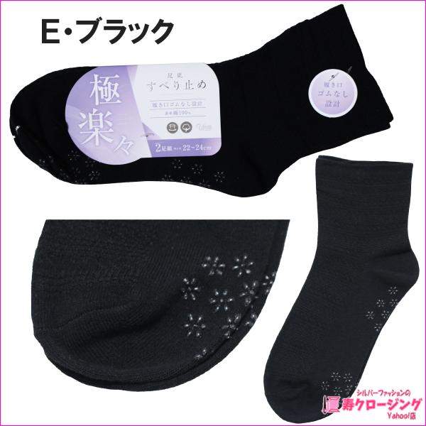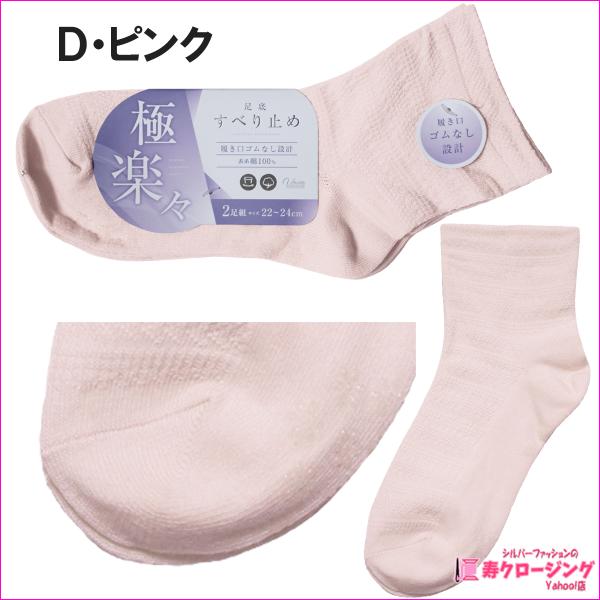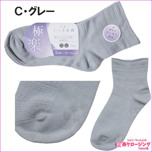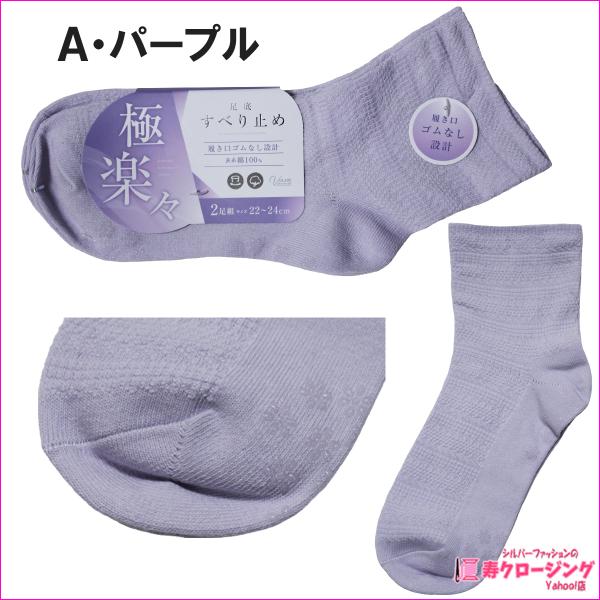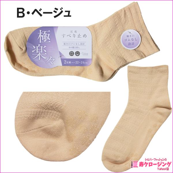 婦人 同色 2足組 すべり止め 付き 口ゴムなし 靴下 あいもの 表糸綿100% 転倒 予防 防止 クリックポスト
