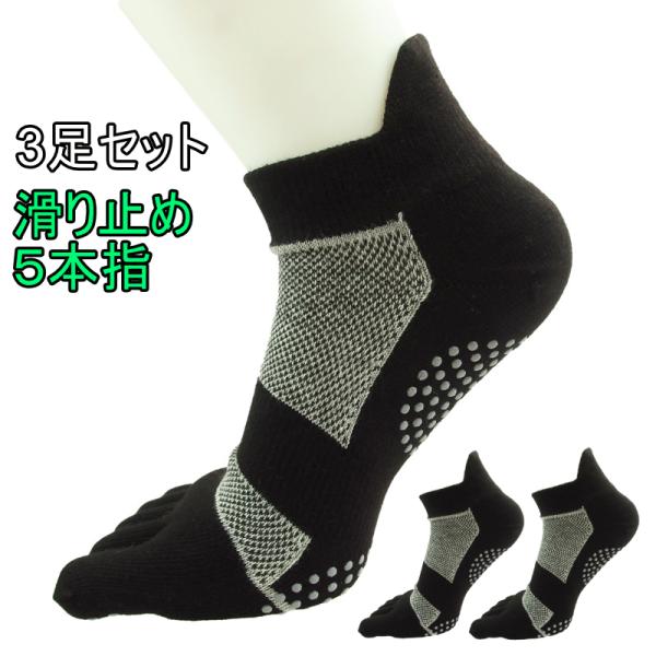 5本指ソックス スポーツ 滑り止め 3足セット 白 黒 ジョギング ゴルフ サッカー 作業 部分メッシュ 靴下 くつした くつ下