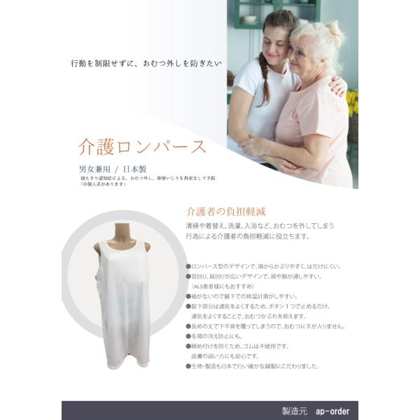 介護ロンパース(穴なし) 日本製 オムツ外し介護 介護用品 介護用 袖なし つなぎ ノースリーブ おむつ外し おむつ弄り 大人用 ロンパース 便利グッズ 下着