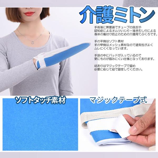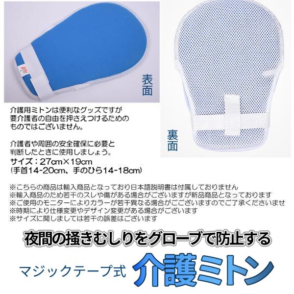 介護 ミトン 2枚 両手 介護用 手袋 グローブ パッド メッシュ 男女 兼用 夜 無意識 掻きむしり 掻く 防止 対策 マジック テープ 固定 大人 子供 左右 手 KAIGOMT