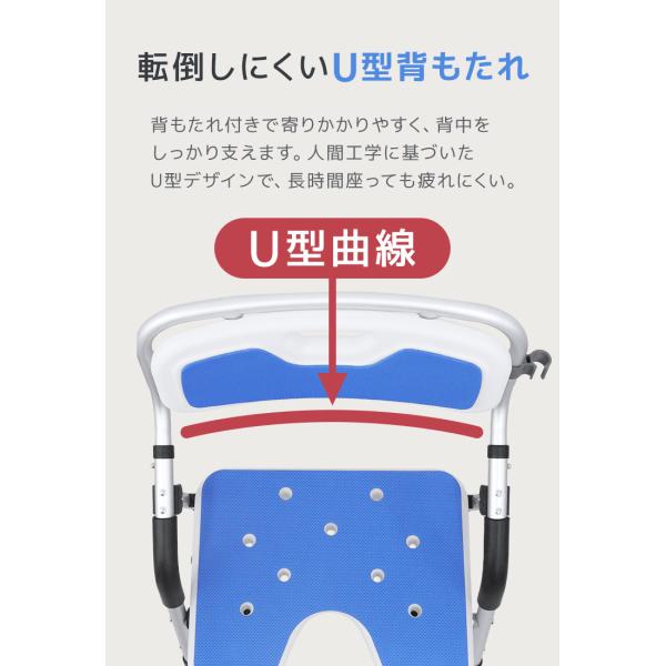 シャワーチェア 介護用 折りたたみ U型座面 肘掛け付き お風呂椅子 クッションマット バスチェア 高齢者 妊婦 入浴補助 転倒防止 耐荷重150kg