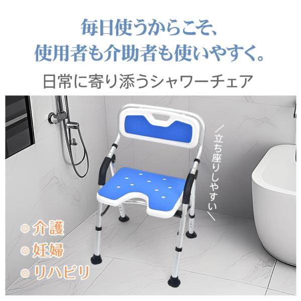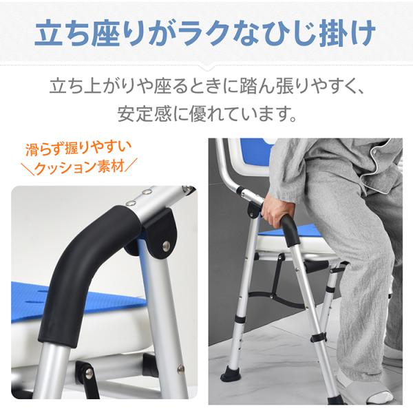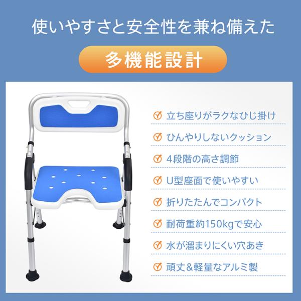 シャワーチェア 介護 折りたたみ 脚ゴム U型座面 背もたれ ひじ掛け 風呂椅子 介護椅子 入浴 高さ調節 高齢者 入浴補助 バスチェア 風呂イス クッション マット
