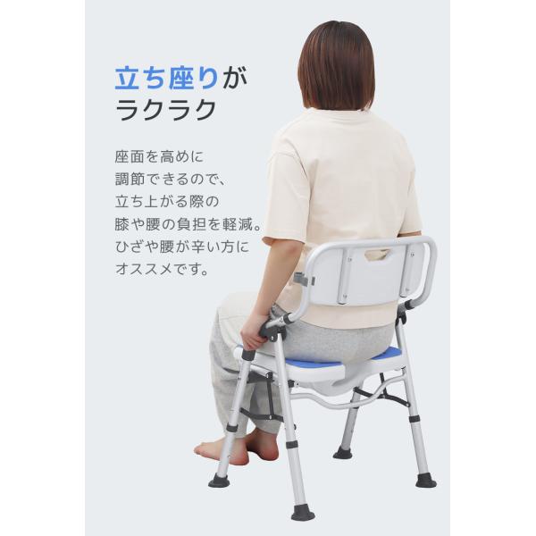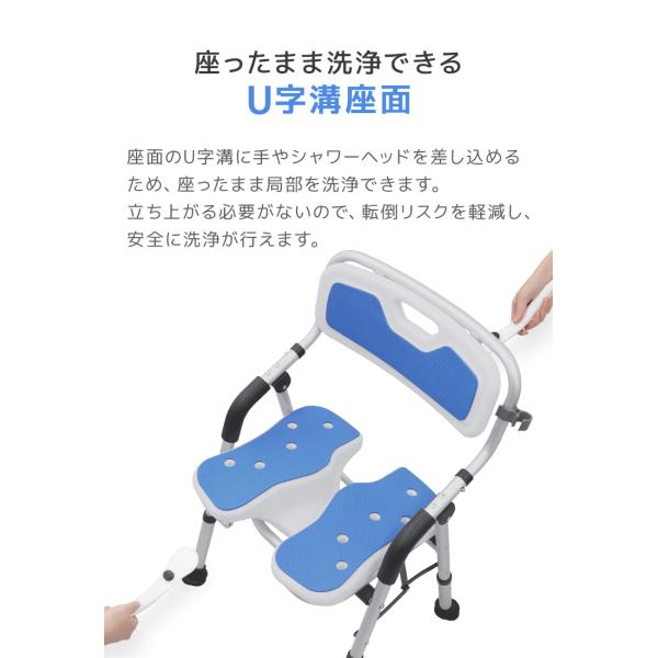 シャワーチェア 介護用 折りたたみ U字溝座面 肘掛け付き 背もたれ お風呂椅子 クッションマット バスチェア 高齢者 妊婦 入浴補助 耐荷重150kg