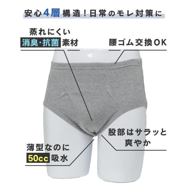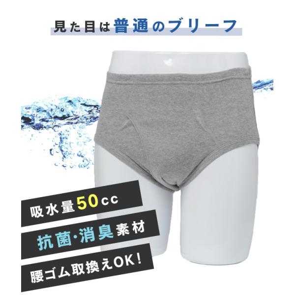 失禁パンツ 尿漏れパンツ ブリーフ 男性用 軽失禁 中失禁 50cc 50ml 下着 尿もれ 吸水パンツ S M L LL 安心ブリーフ50
