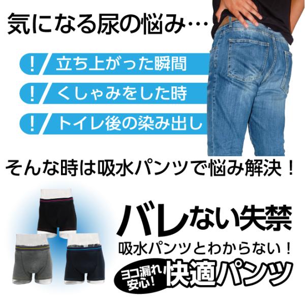 ポイント5倍 3枚組 失禁パンツ 男性用 ボクサーパンツ 吸水パンツ 大容量 東洋紡 TOYOBO 無地 メンズ 漏れ 大きいサイズ 失禁 QVC 敬老