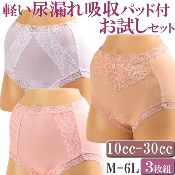 失禁パンツ 女性用 尿漏れパンツ おしゃれ 吸水ショーツ 防水 かわいい 綿 レディース 深ばき セット 福袋 3枚[M:1/1] 大きいサイズ 5l 3l 6L 4l ll L M