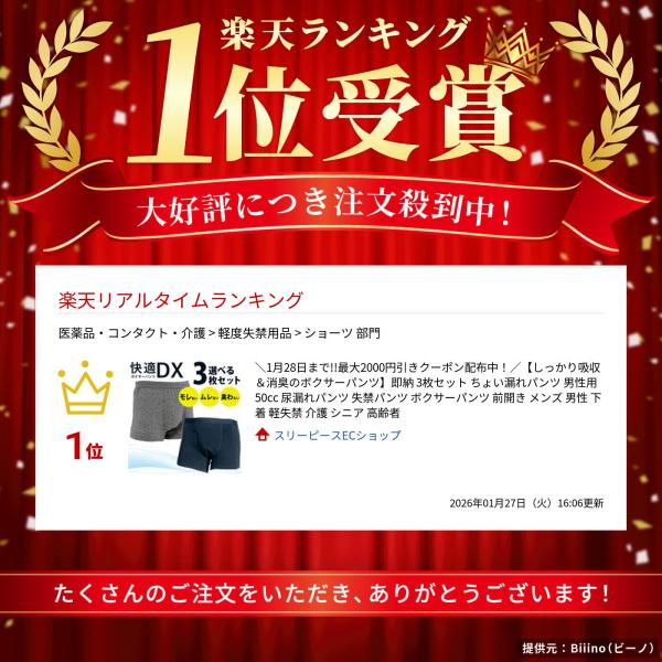3枚セット メンズ 吸水ボクサーパンツ 尿漏れ対策 消臭 通気性 ムレにくい 漏れ防止 綿ストレッチ 男性用 インナー 快適ボクサーパンツDX