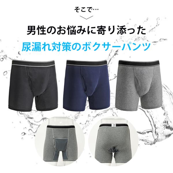 \今月人気NO1/失禁 尿漏れパンツ 男性 メンズ 3枚 前開き ボクサーパンツ / 新横漏れ防止吸水パッド付ボクサーパンツ
