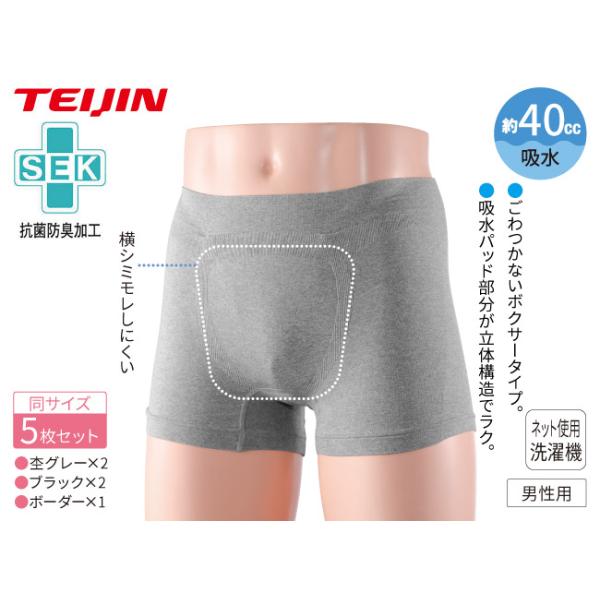 TEIJIN テイジン 高機能吸水パンツ 男性用5枚セット - 40cc ちょい漏れ 尿モレ 軽失禁 軽度 失禁 パンツ 吸水 パッド 下着 インナー 介護 まとめ買い メンズ